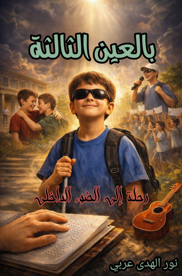 نبذة عن الرواية بالعين الثالثة: رحلة إلى الضوء الداخلي" رواية تربوية واقعية موجهة للأطفال ذوي الإعاقة البصرية، تروي قصة سامي الصبي الكفيف البالغ 9 سنوات في رحلته نحو الاستقلال والثقة بالنفس. تبدأ الرواية بصباح يومي عادي حيث يتحسس سامي ملابسه بعصاه البيضاء، ويواجه تحديات المدرسة والتنمر من رامي الذي يصبح صديقا لاحقا، مرورا بصداقته مع علي ذي ضعف السمع، وصولا إلى قيادته حملات مجتمعية وتدريس التعليم الخاص. تنقسم إلى 10 فصول تغطي الاستقلال اليومي (اللباس والطريق إلى المدرسة بالبرايل)، الصداقات، النجاحات مثل "يوم المواهب" بالغناء و"نادي الحواس"، والتأثير المجتمعي، مع مقدمة وخاتمة ملهمة. تركز على دروس الثقة بالنفس والضوء الداخلي الذي يفوق البصر، موجهة لأطفال 6-12 سنة ذوي الإعاقة، أهلهم، وطلاب التعليم العادي لتعزيز التعاطف، مستوحاة من برامج تعليمية حقيقية.