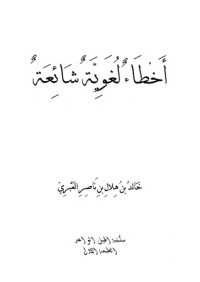 كتاب أخطاء لغوية شائعة للمؤلف خالد بن هلال بن ناصر العبري  لقد افتقدنا في أيامنا هذه المهندس اللغوي، والطبيب الشاعر، والمعلم المتذوق للشعر، وصارت حجتنا في تبرئة أنفسنا: التخصص، فهذا محام وليس لغوياً، وذلك موظف وليس من أهل الصرف، ونحن لا ننكر ما للتخصص من أهمية في إتقان العلوم والتبحر فيها، ولكن ما لا يُدرك جُله لا يُترك كله، وإتقان العربية قائدة تبني عليها بقية العلوم، ونحن لا نطلب المستحيل. وواقع الأمر أن هممنا قد ضعفت وعزائمنا قد قصرت، وصرنا نركن إلى السهل الذي لا عناء في تحصيله، حتى وصلنا إلى مرحلة صار التحدث فيها بالفصحى تكلفاً، ومحاربة الخطأ اللغوي الشائع مغالاة، وصار جمع كبير ينادي بتبسيط النحو، وحذف كثير من مباحثه. والذي نراه أنه يجب على العربي أن يُلم بالقواعد العامة للغته، من مجرورات ومنصوبات ومرفوعات، وأن يتعلم من لغته منا يستطيع أن يميز به بين كلامه وكلام الأعاجم، وما يُعينه على تلاوة القرآن الكريم، وما يسعفه إلى فهم ما يقرأه من كلام رسول الله ﷺ ومن شعر العرب وسائر الكتب في مختلف فنون العلم.