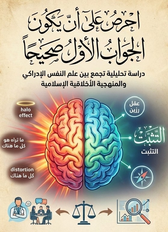 كتاب "احرص على أن يكون الجواب الأول صحيحا" هو دراسة تحليلية تجمع بين علم النفس الإدراكي والمنهجية الأخلاقية الإسلامية. يتناول الكتاب صراع العقل بين النظام الأول السريع والنظام الثاني التحليلي، كاشفا عن انحيازات مثل "تأثير الهالة" وقاعدة "ما تراه هو كل ما هناك" التي تشوه الواقع. يربط العمل هذه الاكتشافات بمبدأ "التثبت" الشرعي لمواجهة جبلة العجلة والظن. كما يستعرض آثار القفز للنتائج في الطب والإدارة، محذرا من "الإغلاق المبكر" للتشخيص. يهدف الكتاب لبناء "عقل رزين" عبر استراتيجيات عملية كالمقابلات المهيكلة، ويرتقي ب "التثبت" من تقنية ذهنية إلى عبادة وقيمة أخلاقية لصيانة المجتمع