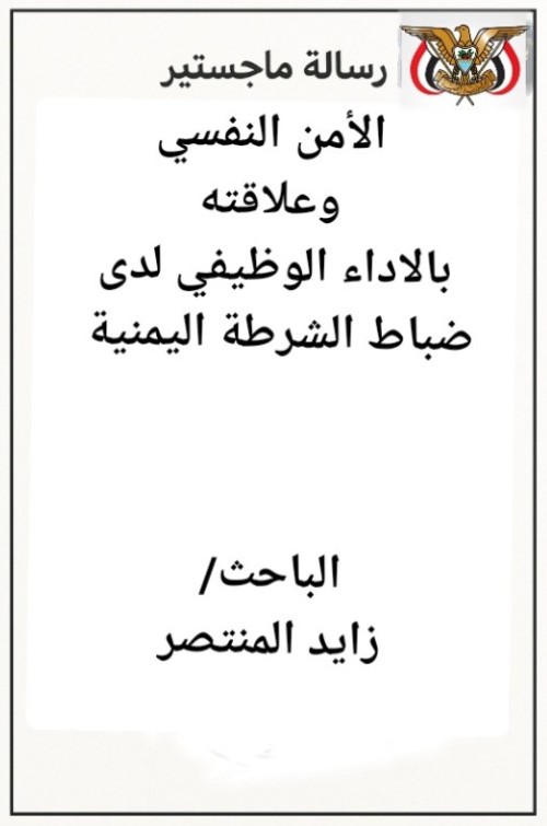 ماجستير في الأمن النفسي وعلاقته بالاداء الوظيفي لدى ضباط الشرطة اليمنية