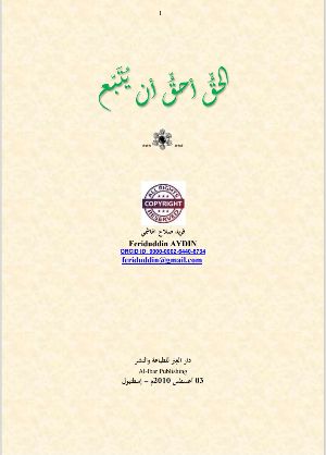 كتاب الحق أحق أن يتبع بقلم فريد صلاح الهاشمي.....هذه رسالة كتبها الشيخ فريد صلاح الهاشمي (زعيم طائفة من النقشبديين سابقًا، وقد تبرّأ من الطريقة النقشبندية وأهلِها، واعتنق الدين الإسلامِيَّ الحنيف بعد أن قام بدراسة شاملة حول هذا التيار الصوفي الخطير أخذت من حياته 23 سنةً! وتأكّدَ أن هذه الحركةَ الصوفيةَ بعيدة ٌعن الإسلامِ بُعْدَ ما بين السماء والأرض، كما جمع بحثَهُ في كتابٍ بعنوان "الطريقة النقشبندية بين ماضيها وحاضرها")، ثم بعث بنسخةٍ من بحثِه هذا، بِطَيِّ هذه الرسالةِ إلى أحد مشاهير الطريقة النقشبندية (الشيخ نور الدين سيداذاده) المقيم بضواحي مدينة بتليس الواقعة في المنطقة الكردية بتركيا، رجاءَ انتباهه إلى خطر هذه الطريقة، ونبذه أباطيل الصوفية، وقيامه بإرشاد الناسِ إلى عقيدة أهل السنة والجماعة. إن هذه الرسالة لا يستغني عنها أي شخص يجهل ما أصابَ عقائد الناس من الفوضى والفسادِ على الساحة التركية، وهي تشتمل على مسائل هامةٍ وتكشف أسرار أهل الزندقة بإيجاز. عدنان عبد المهيمن الأماسي 07 مايو 2019م.