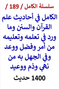 كتاب الكامل في احاديث علم القران والسنن وما ورد في تعلمه وتعليمه من امر وفضل سلسلة الكامل / كتاب رقم ( 189 ) / ( الكامل في أحاديث علم القرآن والسنن وما ورد في تعلمه وتعليمه من أمر وفضل ووعد وفي الجهل به من نهي وذم ووعيد / 1400 حديث ) ، لمؤلفه د/ عامر الحسيني