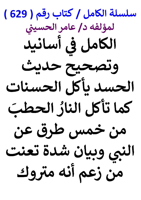 سلسلة الكامل / كتاب رقم ( 629 ) / ( الكامل في أسانيد وتصحيح حديث الحسد يأكل الحسنات كما تأكل النارُ الحطبَ من خمس طرق عن النبي وبيان شدة تعنت من زعم أنه متروك ) ، لمؤلفه د/ عامر الحسيني