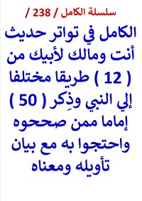 كتاب الكامل في تواتر حديث انت ومالك لابيك من 12 طريقا مختلفا الي النبي وبيان تأويله  بقلم عامر الحسيني....سلسلة الكامل / كتاب رقم ( 238 ) / ( الكامل في تواتر حديث أنت ومالك لأبيك من ( 12 ) طريقا مختلفا إلي النبي وذِكر ( 50 ) إماما ممن صححوه واحتجوا به مع بيان تأويله ومعناه ) ، لمؤلفه د/ عامر الحسيني