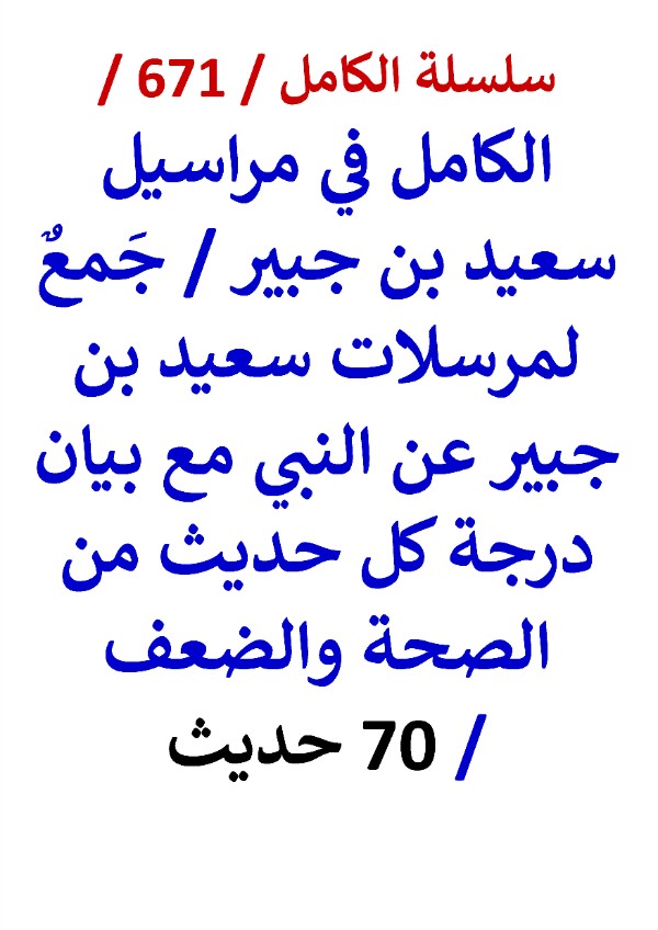 سلسلة الكامل / كتاب رقم ( 671 ) / ( الكامل في مراسيل سعيد بن جبير / جمع لمرسلات سعيد بن جبير عن النبي مع بيان درجة كل حديث من الصحة والضعف / 70 حديث ) ، لمؤلفه د/ عامر الحسيني