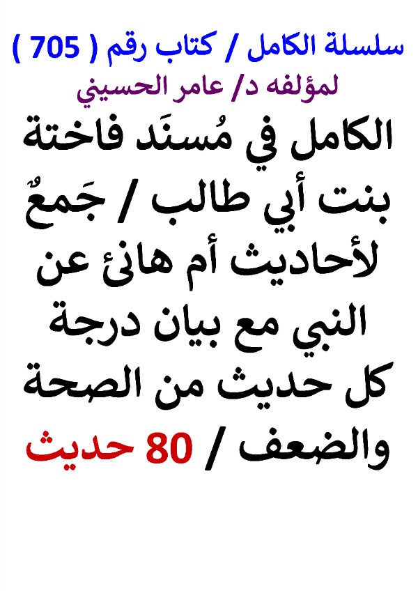 سلسلة الكامل / كتاب رقم ( 705 ) / ( الكامل في مسند فاختة بنت أبي طالب / جمع لأحاديث أم هانئ عن النبي مع بيان درجة كل حديث من الصحة والضعف / 80 حديث ) ، لمؤلفه د/ عامر الحسيني
