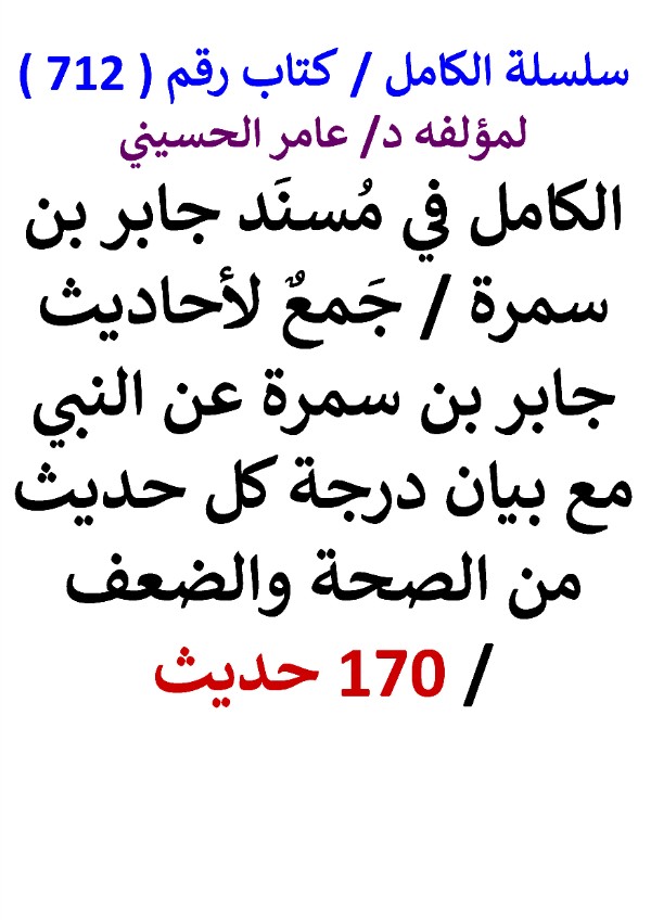 سلسلة الكامل / كتاب رقم ( 712 ) / ( الكامل في مسند جابر بن سمرة / جمع لأحاديث جابر بن سمرة عن النبي مع بيان درجة كل حديث من الصحة والضعف / 170 حديث ) ، لمؤلفه د/ عامر الحسيني