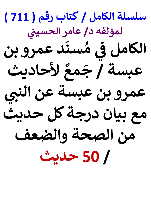 سلسلة الكامل / كتاب رقم ( 711 ) / ( الكامل في مسند عمرو بن عبسة / جمع لأحاديث عمرو بن عبسة عن النبي مع بيان درجة كل حديث من الصحة والضعف / 50 حديث ) ، لمؤلفه د/ عامر الحسيني