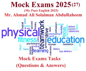 Mock Exams 27 by أحمد علي سليمان عبد الرحيم .. (Arabic is your best way to the Paradise in the Day of Judgment! But English is your best way to the life on the Earth nowadays! Then, you should do all your best to speak, write, understand and treat with them easily and fluently! That is my attempt which helps you all in English. I designed it in a very easy style putting the questions and answers to make you as a student and a teacher at the same time! In a word, it is a kind of the personal self-learning! May Allah The Al-Mighty bless you all! With all my best hearty wishes!) As a matter of fact, (Pure English Series) in all English branches:- Reading, Writing, Speaking, Listening, Grammar & Vocabulary, Vocabulary and Grammar was created in 2000 to help you all:- as teachers and students with your English! It was designed in a very short time by Mr. Ahmad Ali Solaiman Abdurraheem!