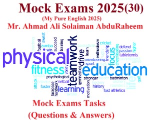 Mock Exams 30 by أحمد علي سليمان عبد الرحيم .. (Arabic is your best way to the Paradise in the Day of Judgment! But English is your best way to the life on the Earth nowadays! Then, you should do all your best to speak, write, understand and treat with them easily and fluently! That is my attempt which helps you all in English. I designed it in a very easy style putting the questions and answers to make you as a student and a teacher at the same time! In a word, it is a kind of the personal self-learning! May Allah The Al-Mighty bless you all! With all my best hearty wishes!) As a matter of fact, (Pure English Series) in all English branches:- Reading, Writing, Speaking, Listening, Grammar & Vocabulary, Vocabulary and Grammar was created in 2000 to help you all:- as teachers and students with your English! It was designed in a very short time by Mr. Ahmad Ali Solaiman Abdurraheem!
