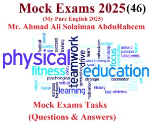 Mock Exams 46 by أحمد علي سليمان عبد الرحيم .. (Arabic is your best way to the Paradise in the Day of Judgment! But English is your best way to the life on the Earth nowadays! Then, you should do all your best to speak, write, understand and treat with them easily and fluently! That is my attempt which helps you all in English. I designed it in a very easy style putting the questions and answers to make you as a student and a teacher at the same time! In a word, it is a kind of the personal self-learning! May Allah The Al-Mighty bless you all! With all my best hearty wishes!) As a matter of fact, (Pure English Series) in all English branches:- Reading, Writing, Speaking, Listening, Grammar & Vocabulary, Vocabulary and Grammar was created in 2000 to help you all:- as teachers and students with your English! It was designed in a very short time by Mr. Ahmad Ali Solaiman Abdurraheem!